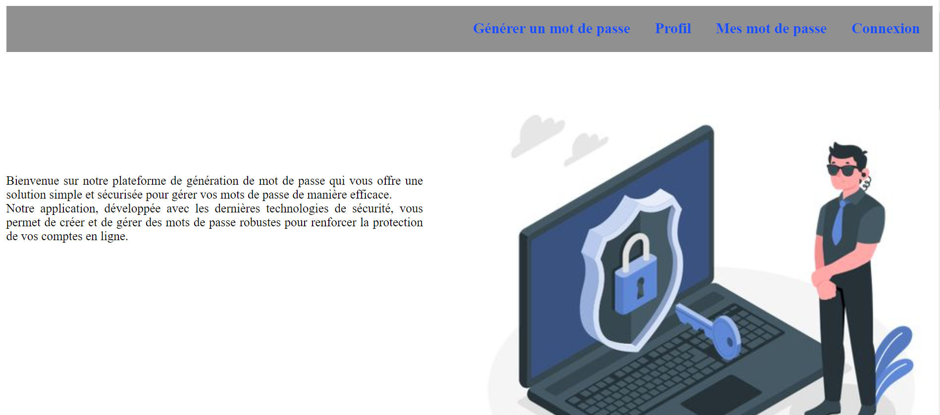 Password Security est une application web dévelopée avec React js en frontend et Django en backend. Cette application permet aux utilisateurs de générer des mots de passe robustre, de les associer à d'autres applications et de les enrégistrer.